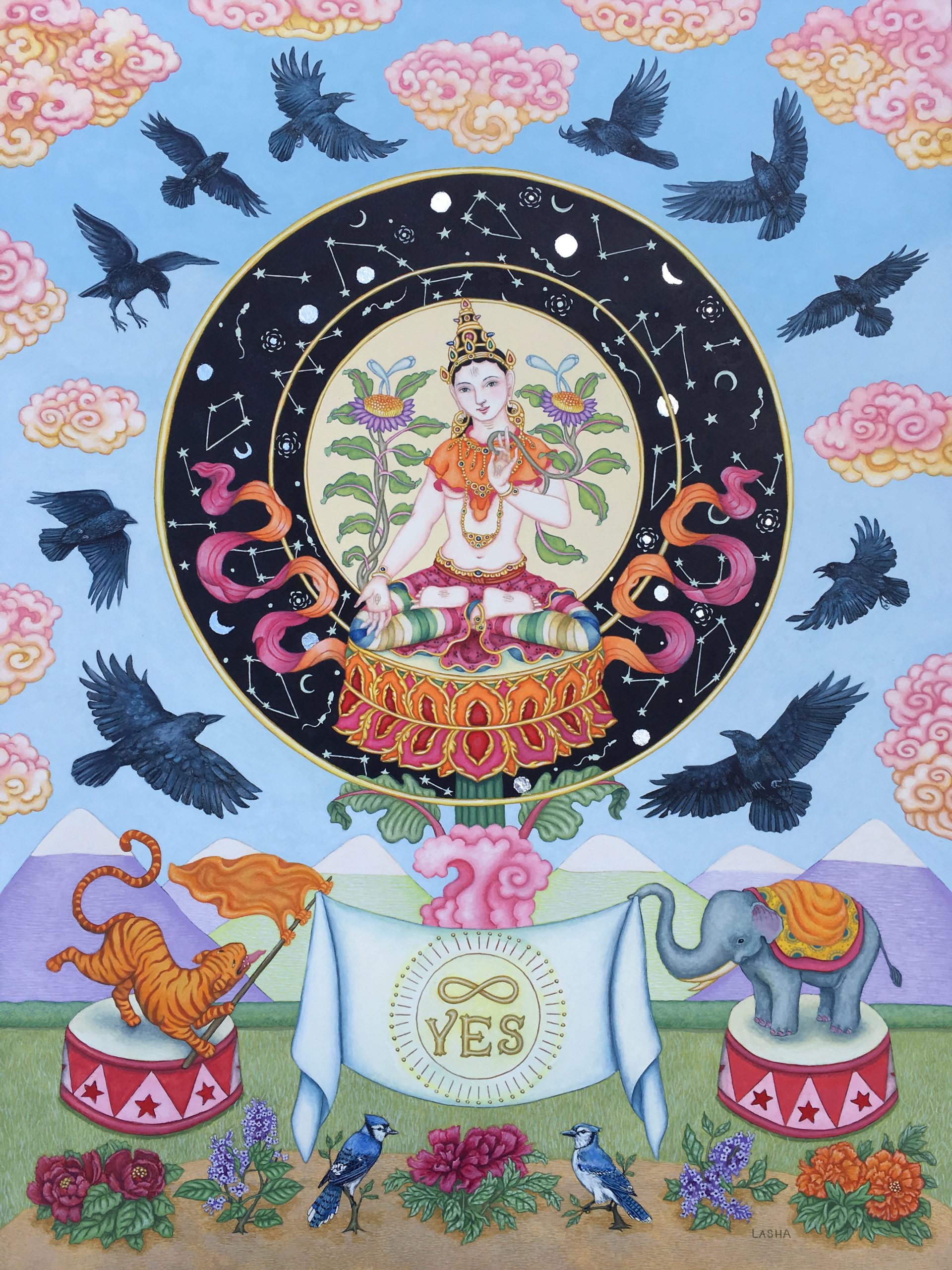 Lasha lives with her husband, son, and an abundance of pets in a little yellow brick cottage in Stratford, Ontario, Canada. She took time away from her artistic practice to speak with Lion’s Roar about her process and practice.