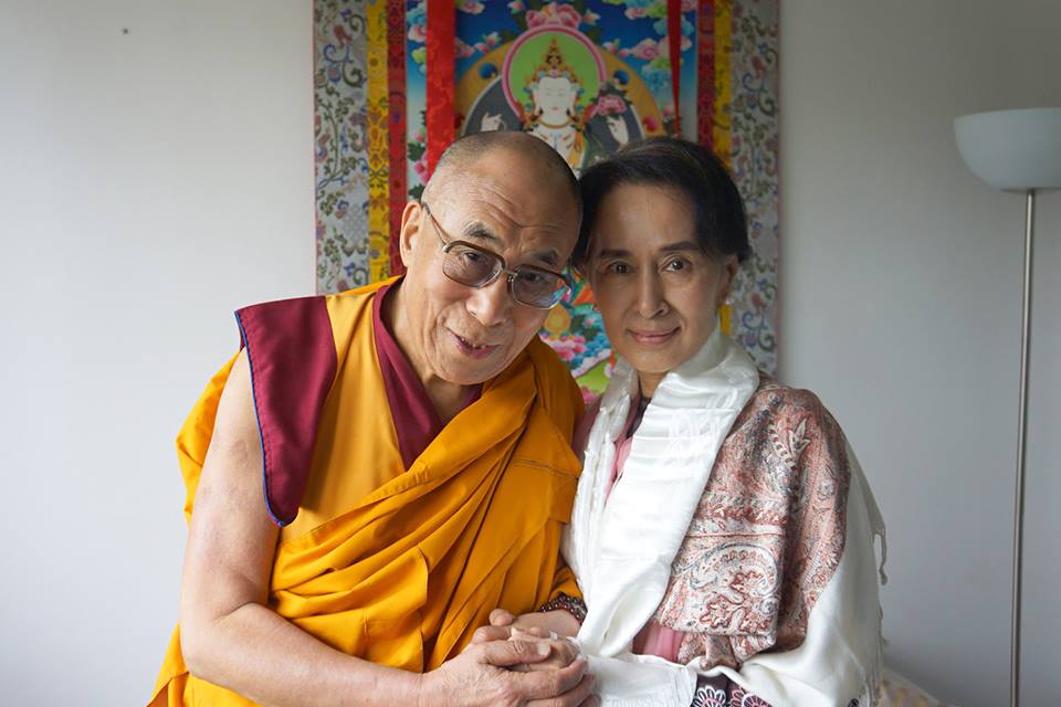 The Dalai Lama and Aung Sang Suu Kyi meet together in Prague, praise Vaclav Havel at human rights conference
