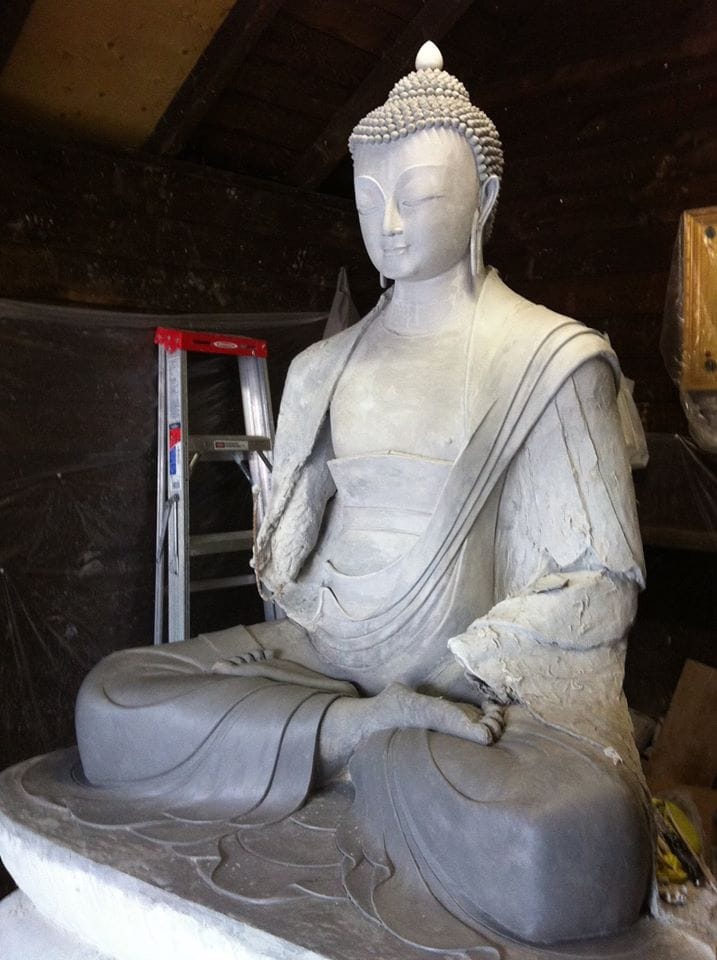 Tsewang Dorji crafting new Buddha statue for Palyul Foundation of Canada