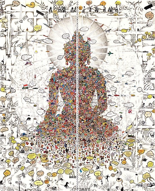 The Buddha and the swarm of minutiae: provocative new artwork by Gonkar Gyatso on display at the Met.