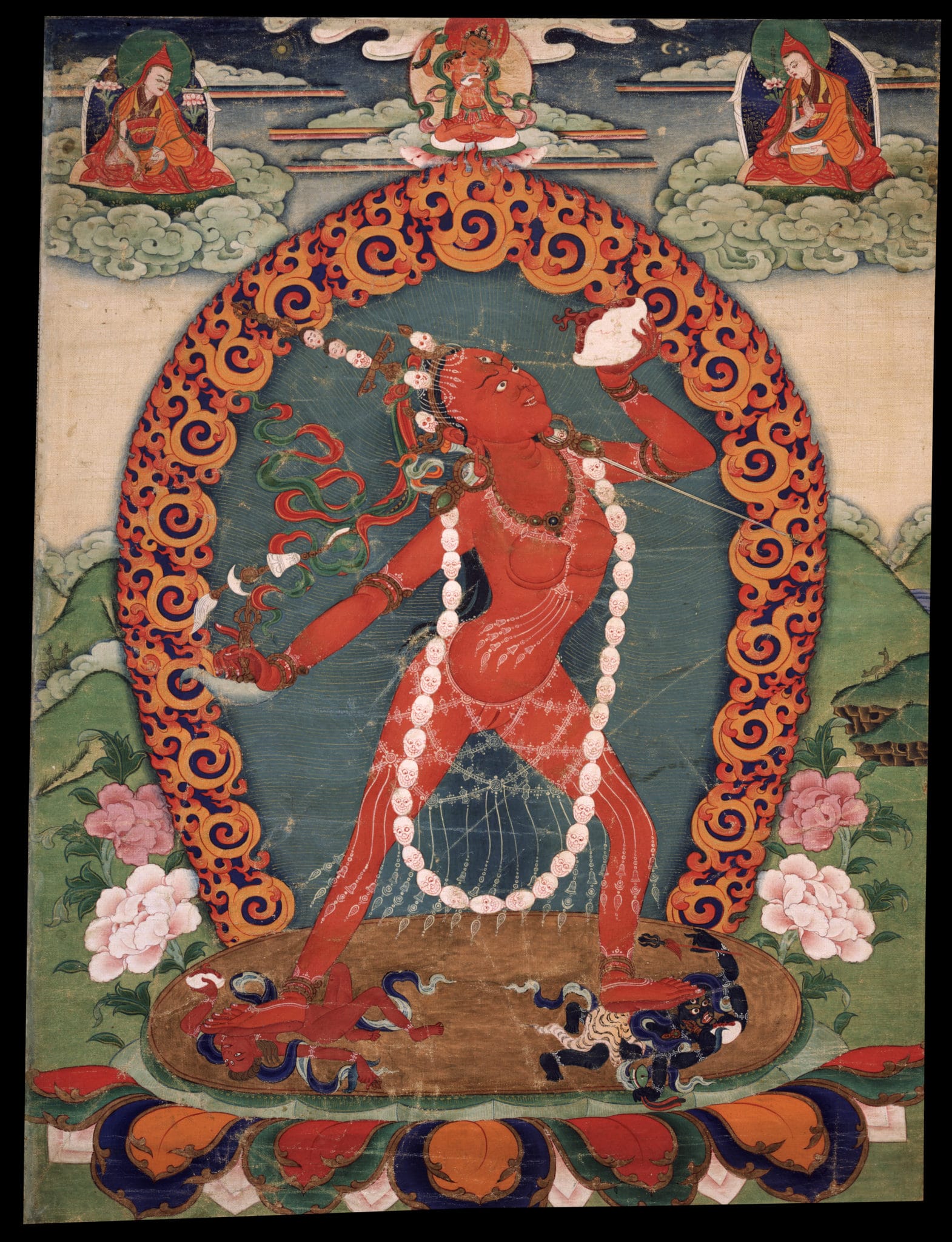 The feminine aspect of enlightenment is represented by female deities. We see female images at every level of Tibetan art. There are peaceful forms like Tara, semi-wrathful forms like Vajrayogini, and wrathful forms such as the female protector Palden Lhamo. Each of these has a male counterpart, because male and female aspects are both necessary for enlightenment. In fact, both are necessary throughout the spiritual path.