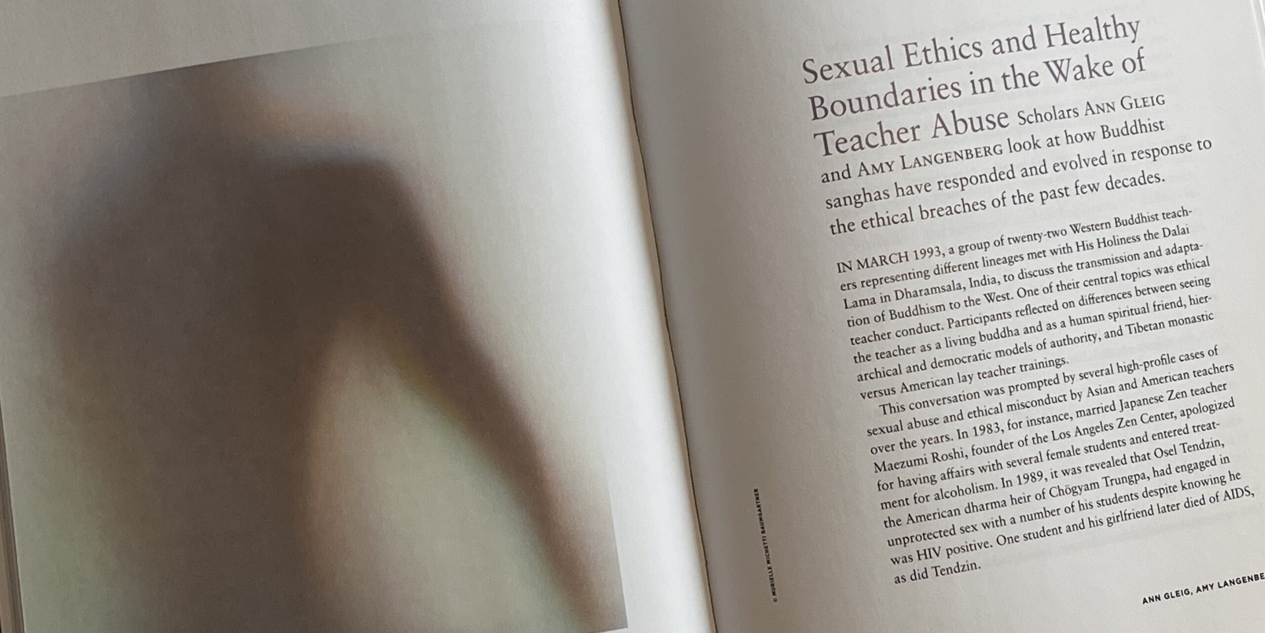 Ann Gleig es profesora asociada de religión y estudios culturales en la Universidad de Florida Central. Es autora de American Dharma: Buddhism Beyond Modernity y editora, junto con Scott Mitchell, del Oxford Handbook of American Buddhism. Colabora con Amy Langenberg en Abuse, Sex, and the Sangha, un estudio en forma de libro sobre los abusos sexuales en el budismo converso estadounidense, que publicará la Yale University Press.