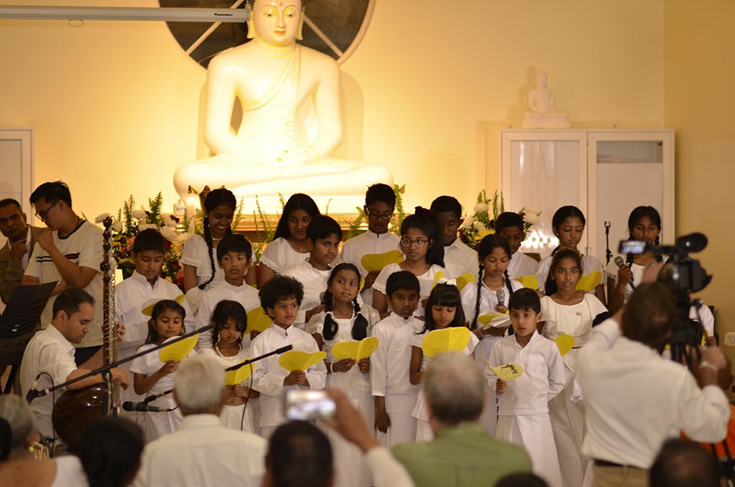 In the early nineties, my Ammi (“mother”) was one of the first lay principals of Dharma Vijaya’s Sunday school. Her proposal that the children sing Sri Lankan Buddhist devotional songs, or “bhakthi gee”, in Sinhala during the Vesak celebrations started a hullaballoo.