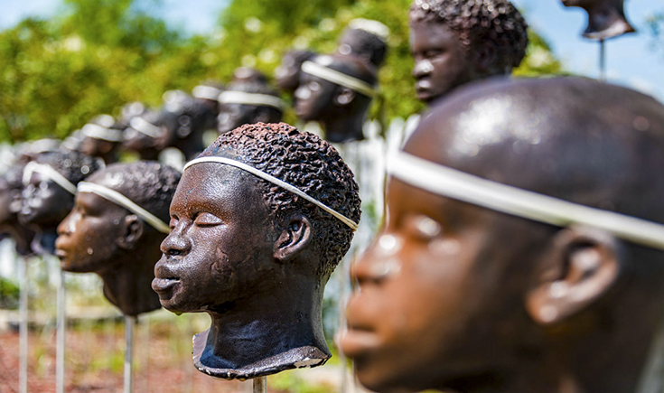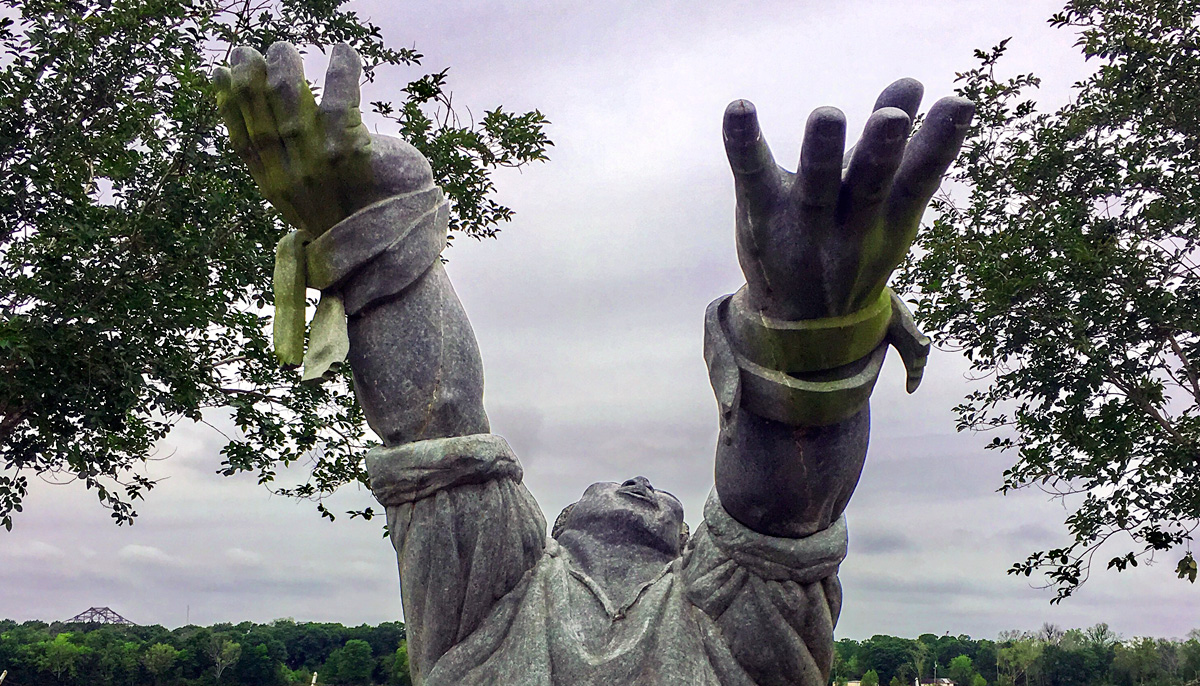 Retreatant Kabir Hypolite was particularly struck by this monument. As he walked by rows of ceramic black heads on poles commemorating those beheaded in the uprising, Hypolite came upon his own last name.