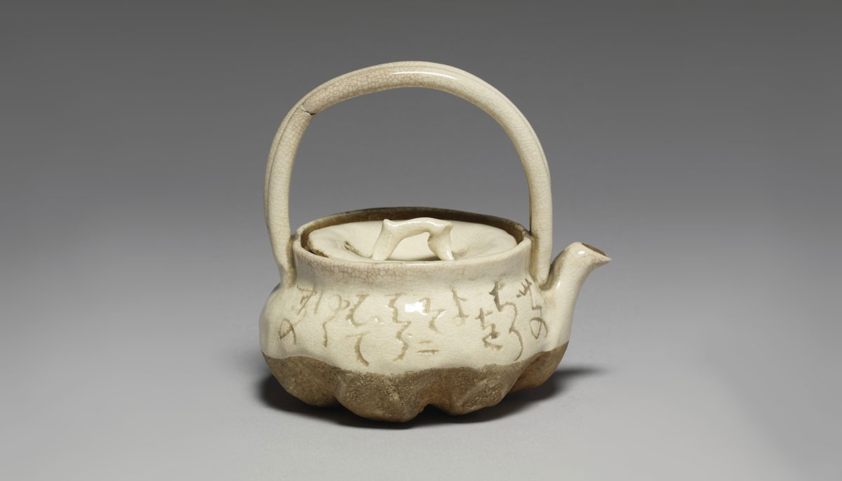 Rengetsu was ordained in the Pure Land Buddhist tradition, but she studied and integrated Zen and Shingon Buddhism into her practice. Her poetry especially leans into the Zen teachings of self-inquiry, ongoing effort, and enlightenment rather than visions of the “Western Paradise” usually associated with Pure Land practice. Her pottery expresses the Zen aesthetic of wabi-sabi, plain and lonely. My own Japanese Zen teacher, Fukushima Keido Roshi, described Kyoto tea cakes decorated with his calligraphy in this way: “Eat the cookie and taste my mind.” Drinking tea from one of Rengetsu’s cups inscribed with her poetry, one could say: “Drink the tea and feel her heart.”