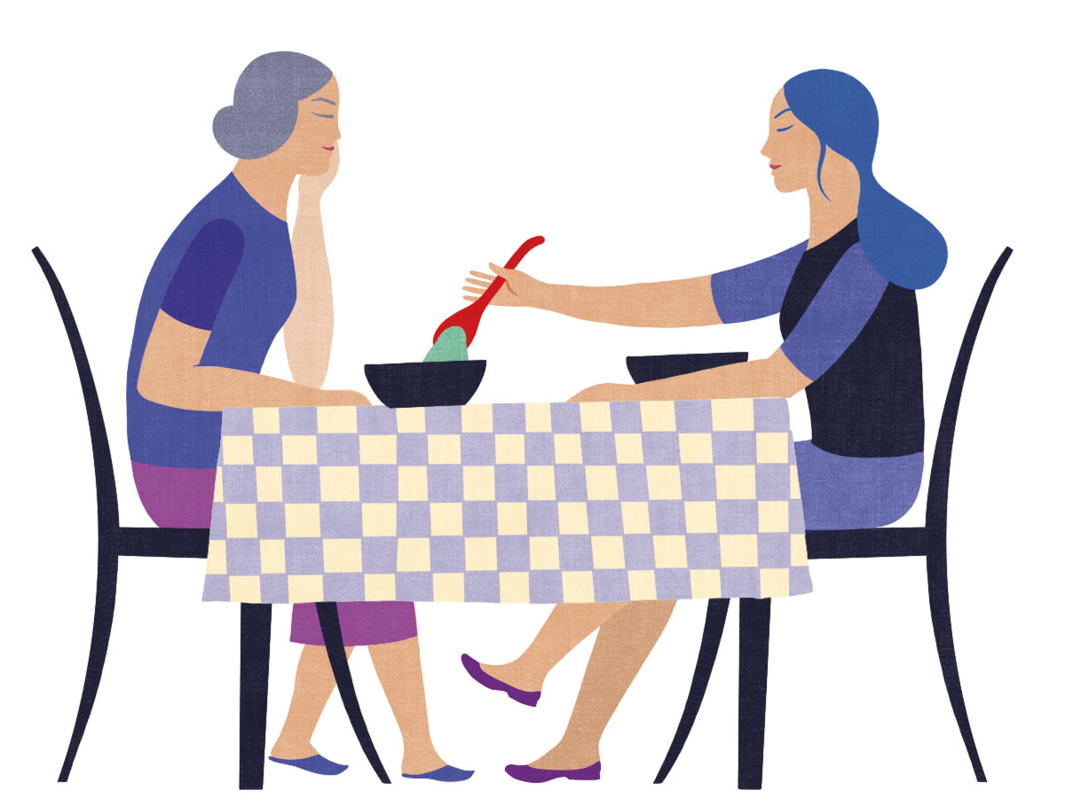 In formal oryoki practice, we practice both giving and receiving by learning how to be meal servers as well as meal eaters. At home, it’s easy to replicate this practice with each other at the dinner table by serving things “family style”—having one person doling out salad, one person dishing out rice, etc., rather than people serving themselves. Or, if you have a long narrow table, you can serve the person across from you. That way everyone can both give and receive food.