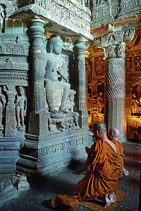 The kind of affinity with caves that Seth is talking about is not limited to Buddhists, and indeed not all rock-cut caves in India have Buddhist connections. Hindus and Jains also made extensive use of such caves, and some, such as the celebrated Ellora Caves, which are just sixty miles from Ajanta, contain Hindu, Jain, and Buddhist monuments. Today in the West we tend to put Buddhism in its own little box, separate, for example, from Hinduism. Yet for the people of ancient and medieval India, spirituality was generally something much more fluid. Case in point, the construction of the Ajanta Caves was funded by wealthy rulers who could perhaps best be described as Hindus with Buddhist leanings.