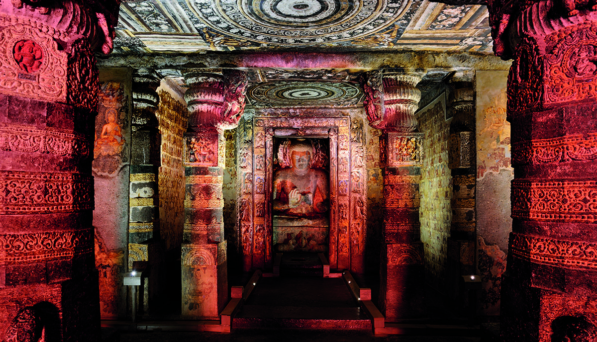 According to Richard Cohen, associate professor emeritus of South Asian religious literatures at the University of California, San Diego, the opulent artistic beauty of the caves was in keeping with the views of early Indian Buddhists. A scripture of the Mulasarvastivada, a Buddhist sect associated with Ajanta, “talks about the importance of creating beauty in this world and of having a beautiful monastery,” says Cohen. Inscribed into the rock at Ajanta, there’s a verse by a monk claiming that it’s better to be in nirvana and free of this world, but if you are going to be in this world, you might as well be in a place of beauty. Ajanta, Cohen says, reminds us that “beauty is a Buddhist value.”
