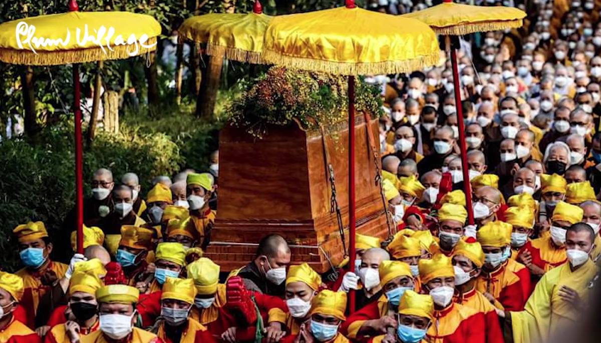 Plum village also shared a four-minute video featuring images and footage of Nhat Hanh’s funeral procession and cremation ceremony on Saturday, January 29, where thousands of people joined the procession in Hue, Vietnam.