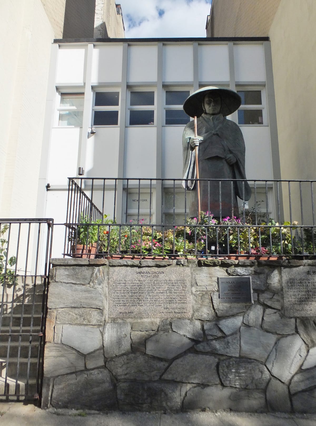 The academy bought a five-story townhouse on Riverside Drive between 105th and 106th Streets that had once belonged to heiress Marion Davies, the longtime mistress of William Randolph Hearst. In 1955, Japanese businessman Seiichi Hirose donated the statue of Shinran Shonin, which had stood in a park in Hiroshima, a little over a mile from where the atomic bomb was dropped. “His wish,” says Hoshina Seki, “was that there be no more Hiroshima.” Zen scholar D.T. Suzuki, who was a frequent visitor in those days, spoke at the statue’s dedication ceremony.