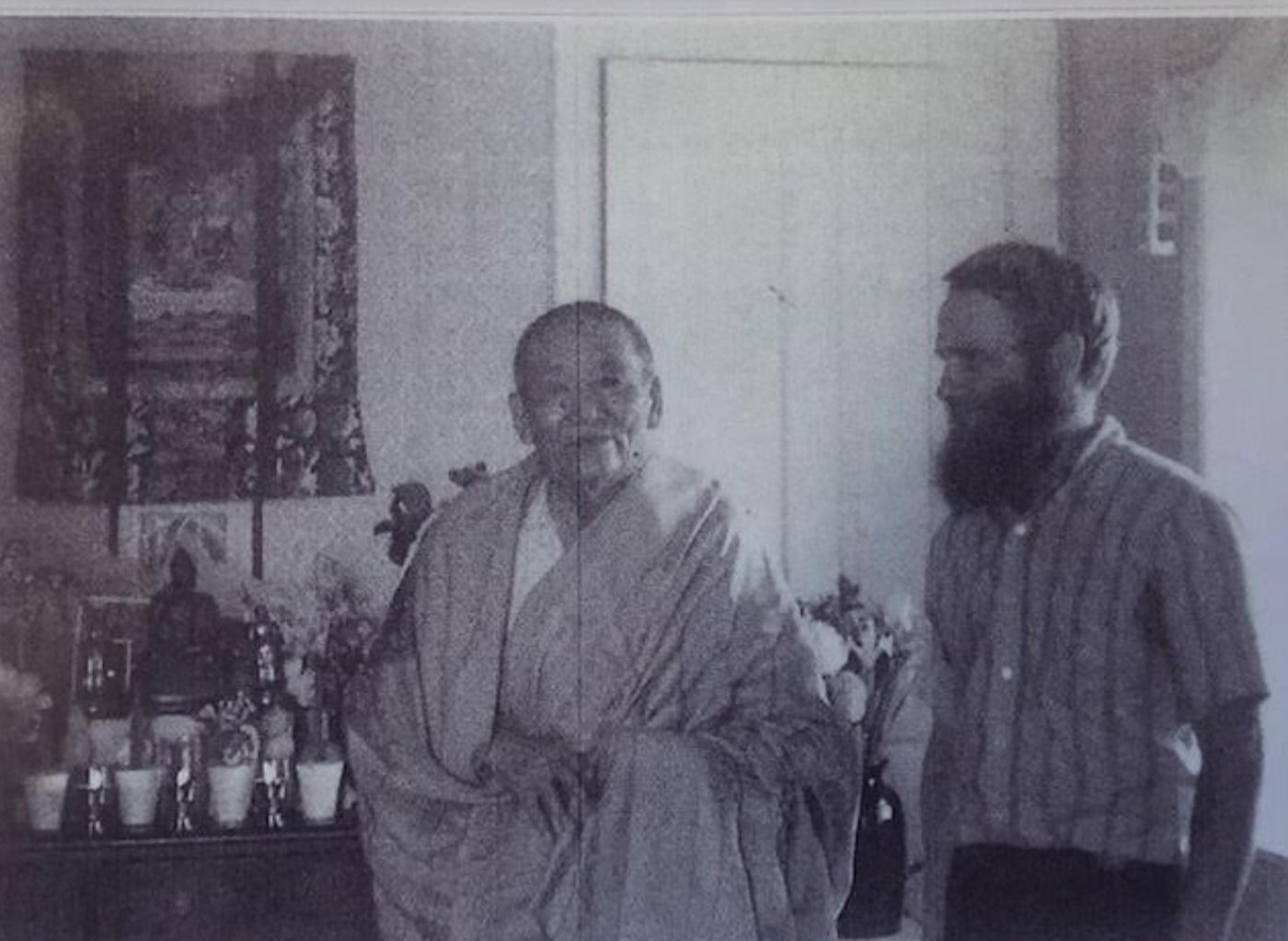 Jeffrey and Prof. Richard Robinson, head of the first Buddhist Studies program in the US, had founded Tibet House that summer, at least partly because the former abbot of the prestigious Tantric College of Lower Lhasa, Kensur Ngawang Lekden, had accepted their invitation to teach in the Buddhist Studies program the following year. He was 70 years old at the time, and his seat as abbot placed him at the very top of the traditional Geluk hierarchy in Tibet, just a few rungs below the Dalai Lama himself. He had spent the first 60 years of his life in traditional Tibet, escaping just before His Holiness. Kensur had been living in France until Geshe Wangyal, at whose Freewood Acres, New Jersey Monastery Jeffrey had lived and studied for about six years before coming to Wisconsin, invited him to this country. From there, he came to Madison. He would teach a seminar on Madhyamaka in the Fall of 1970, which Jeffrey would translate. I couldn’t wait.