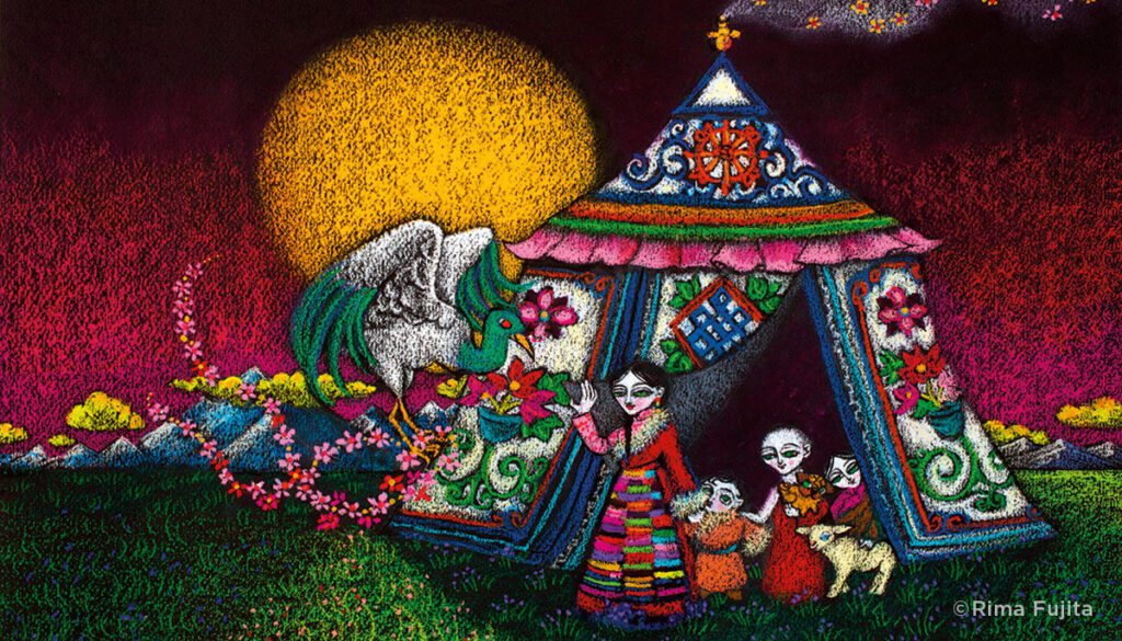 Rima Fujita began writing and illustrating children’s books for Tibetan refugee children in 2001. She’s given more than fifteen thousand book copies to children in exile, and she donates her royalties to the Tibetan Children’s Villages schools in Dharamsala and to Indian-government-run Tibetan schools all over India, plus the Ngoenga School for Tibetan Children with Special Needs in Derahdun, India; Delek Hospital in Dharamsala, India; and more.