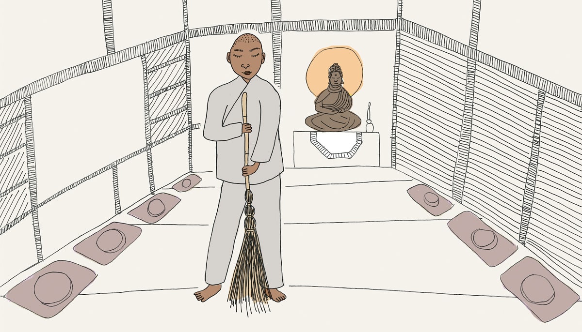 For me, a dark-skinned person of African descent, cleaning the temple as Zen practice felt inappropriate and uncomfortable when I was at the beginning of my training. When you are an older black woman and a young white man tells you how to mop the floor during work period, the experience is akin to being a maid or a reminder of slavery. Ordinary temple work is the kind of labor often relegated in this country to folks of color and poor people. It is work that can ensure a lower rank in society.