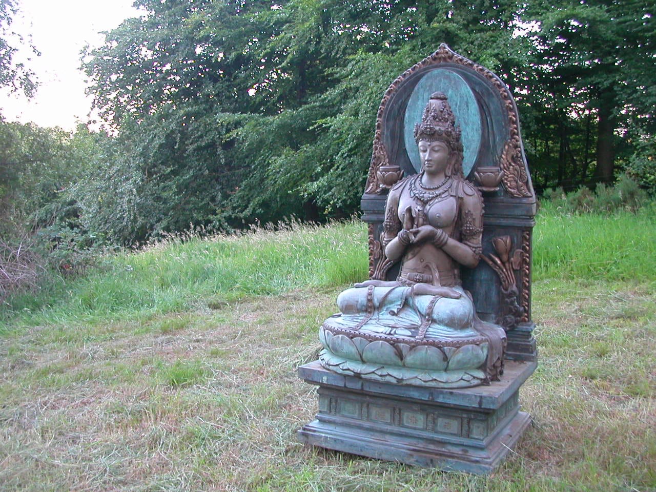 As the masculine deity personifying knowledge, Manjushri is also depicted holding a sword. Sometimes he also holds a vase filled with the elixir of knowledge, which symbolizes direct intuitive insight. The sword is the activity of prajna and the vase is the receptive aspect of learning. Sometimes Manjushri holds a book and a flower. The book symbolizes scholarly learning and the flower represents the organic unfolding of prajna, which like a flower, naturally opens and blossoms. It does not need to be forced.