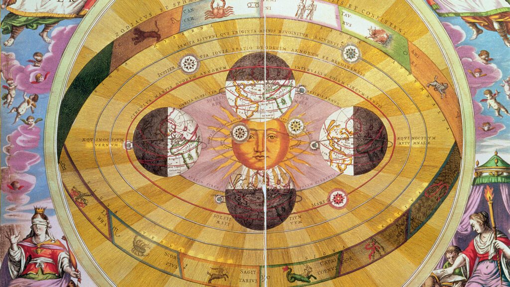 The sun gives us both days and years, and the moon gives us the tides and the lunar month. Some ancient civilizations also marked long-term alignments of other astral bodies, stars and planets, whose cycles were longer than a human lifetime and thus had to be observed and recorded from one generation to the next in order to be recognized. These measurements are all cyclical, coming around again and again. They don’t make progress along a line; they are organic circles, intertwined with the universe itself.
