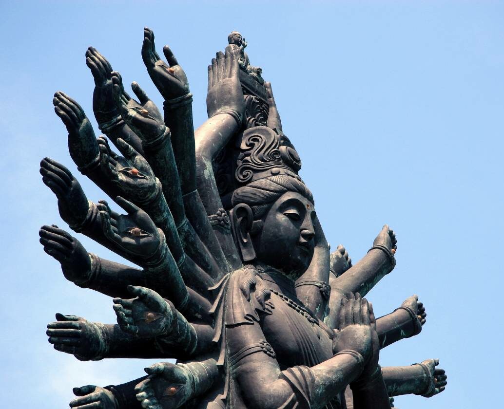 In the final two aspiration prayers honoring Avalokitesvara Bodhisattva, practitioners direct their awareness to recognize the buddhanature implicit in all beings. In the eleventh aspiration prayer, we generate the sincere wish, so emblematic of the Mahayana, for all beings to be free from suffering and to realize the supreme awakening of Buddhahood. And the twelfth and final aspiration prayer, I think, is the most special and insightful of all. It calls practitioners to visualize ourselves as—and truly believe that we and all other beings throughout the Triple World and Ten Directions are—manifestations of Avalokitesvara Bodhisattva’s thousand-hands-and-eyes form that plunge into samsara, skillfully practicing the bodhisattva way—a secret even to our own minds! Every time we practice the dharma, and commit to practicing the dharma in a way that is engaged with the world, we are literally transformed. We let go of discriminations of self and other, becoming part of the great and mysterious emanation body of the thousand-hands-and-eyes Avalokitesvara Bodhisattva.