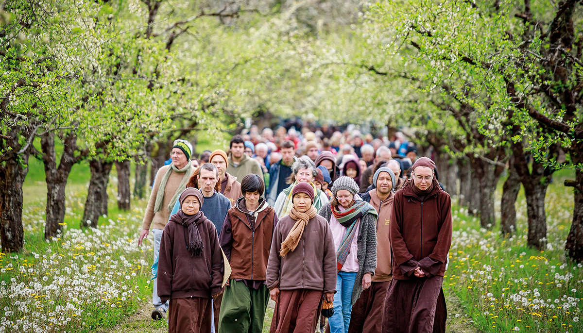 Buddhist teachings present two seemingly contradictory ways of describing reality: the historical dimension and the ultimate dimension. In the historical dimension, you’re outside of me, and I’m outside of you; there’s cause and effect, before and after, this and that. According to this view, which is the commonly accepted way of looking at reality, there’s an overwhelming sense of urgency in the face of the climate crisis. Many scientists already believe it’s too late to prevent civilizational collapse. CO2 and methane emissions, industrial agriculture, pollution, and habitat loss have destabilized our climate, vastly increasing the severity of floods, fires, and hurricanes, while also triggering cascading losses of wildlife on land and in the oceans, as well as accelerating the collapse of Arctic ice cover and Antarctic glaciers.